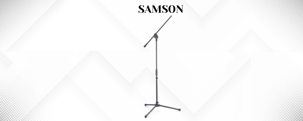 - The Samson MK10 stand has an adjustable height from 28″ to 46.6″ inches. Even though this stand does not have a great extendable height, it’s still suitable for small studios or setups with less space, as it won’t take up much space due to its small height.